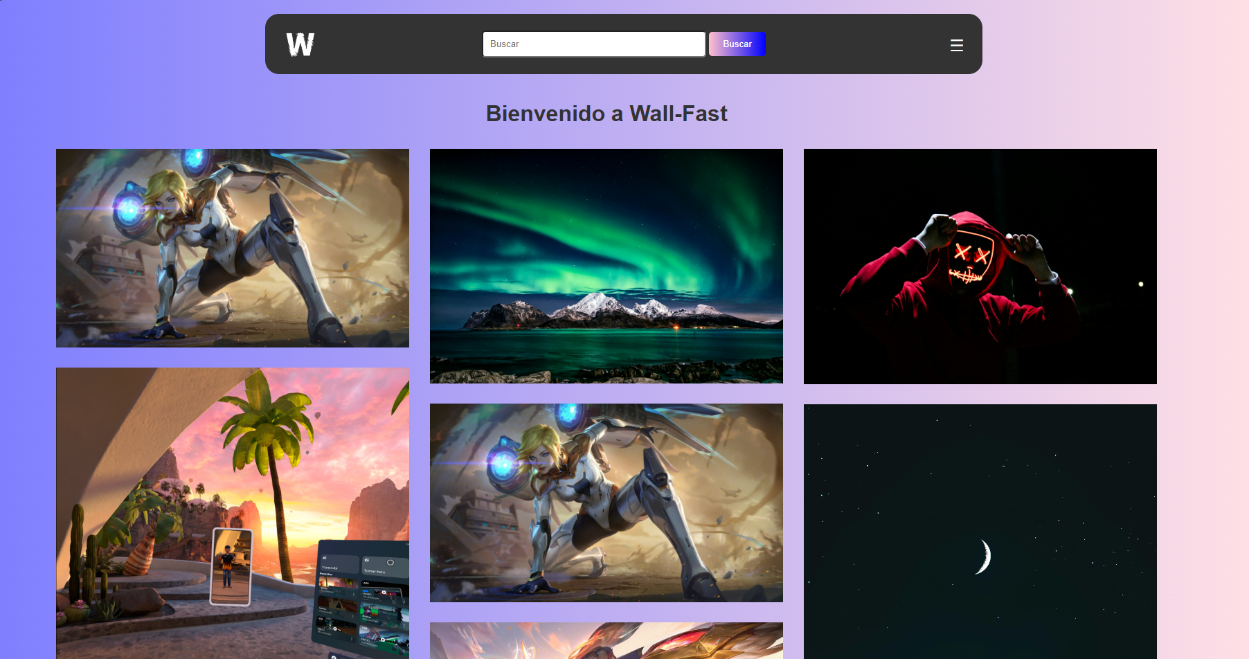 Desarrollo de Página Web para Visualización y Descarga de Wallpapers. Este proyecto consiste en la creación de una plataforma web que permite a los usuarios explorar, ver y descargar una amplia variedad de fondos de pantalla (wallpapers). La página ofrece una interfaz intuitiva y atractiva, facilitando la búsqueda y la navegación por categorías temáticas. Los usuarios pueden descargar wallpapers en diferentes resoluciones, adaptándose a diversos dispositivos y preferencias. El desarrollo se realizó utilizando tecnologías web modernas para asegurar un rendimiento óptimo y una experiencia de usuario fluida.