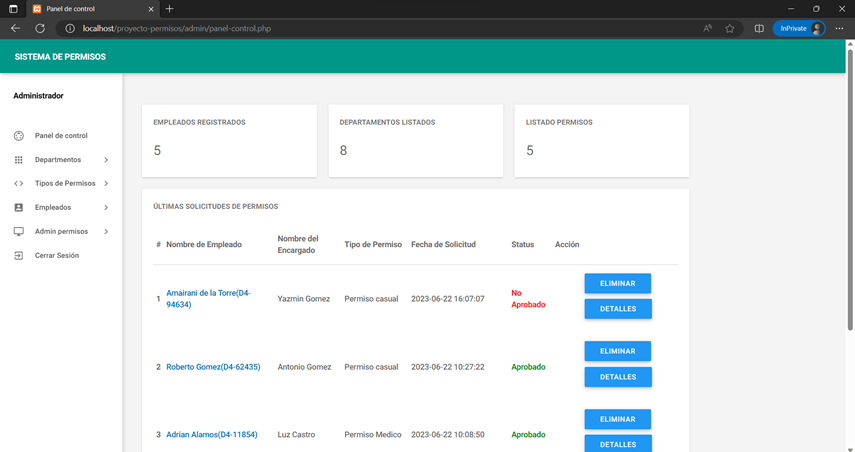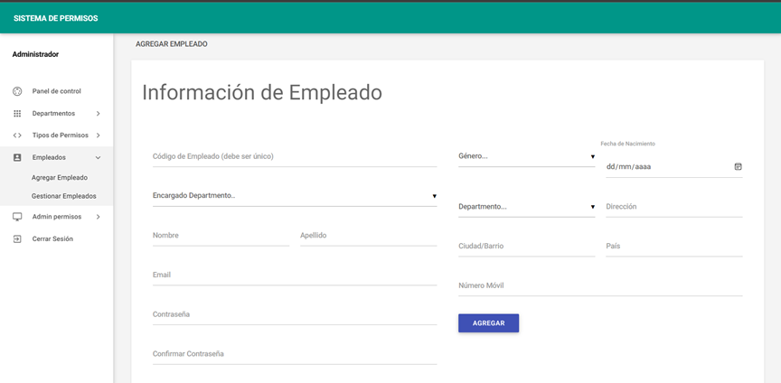 Desarrollo de aplicación web para la Empresa D4ALL. La aplicación permite a los empleados enviar solicitudes de permiso de salida o de ausencia laboral, mejorando el proceso de revisión y aprobación por parte del departamento de Recursos Humanos.