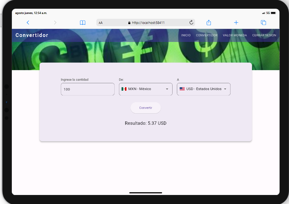 Desarrollo de Aplicación Web de Divisas. Esta aplicación ofrece a los usuarios una herramienta sencilla y eficiente para convertir diferentes monedas, utilizando tasas de cambio actualizadas en tiempo real. La aplicación permite a los usuarios ingresar la cantidad de dinero y seleccionar las monedas de origen y destino para obtener la conversión instantánea. Incluye una interfaz intuitiva y fácil de usar, desarrollada utilizando Flutter. Además, la aplicación integra servicios de API confiables para garantizar la precisión y actualización continua de las tasas de cambio.