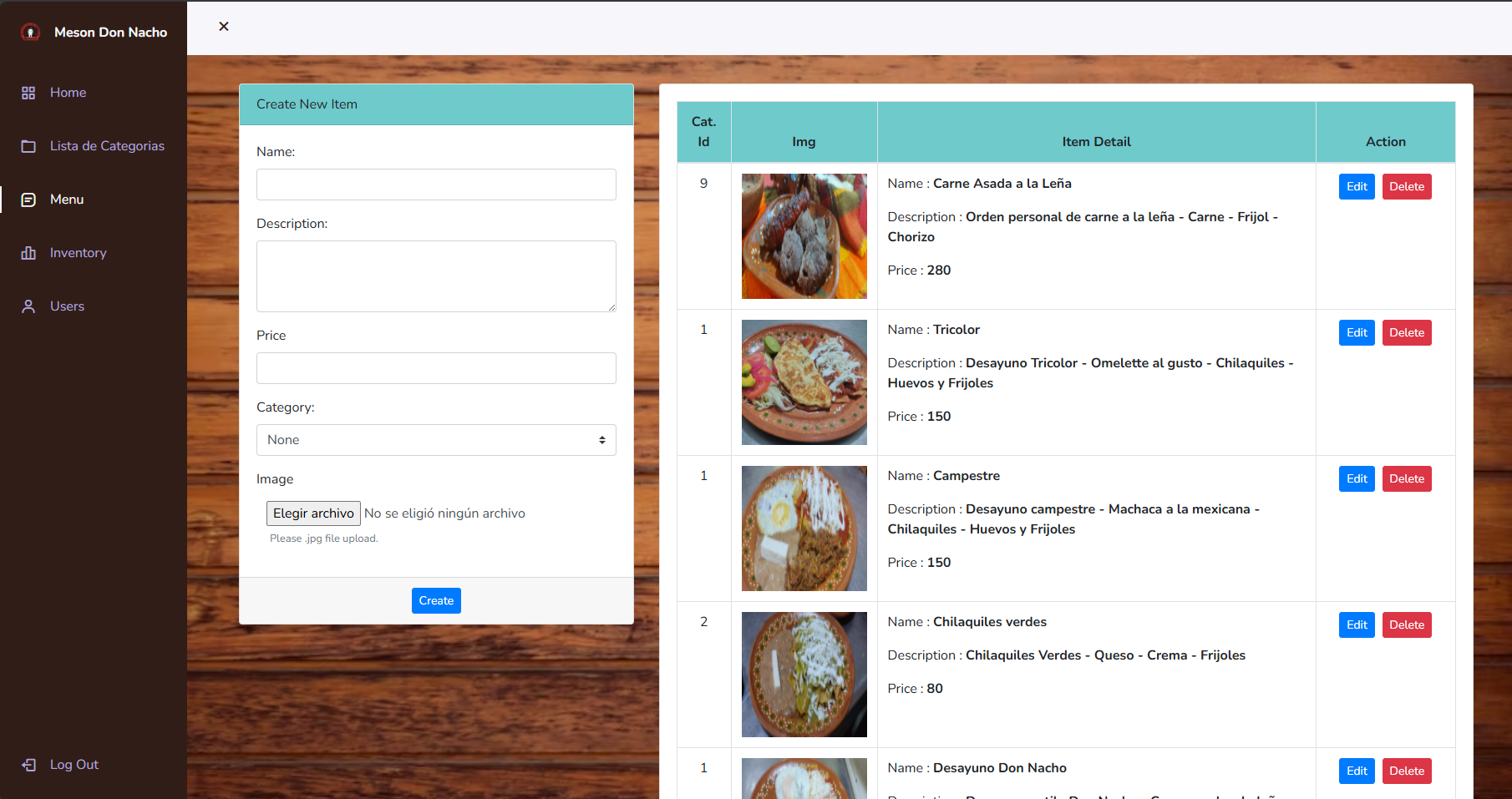 Desarrollo de Aplicación y Sistema para el Restaurante El Mesón de Don Nacho. Este proyecto incluye la creación de una aplicación web y un sistema de gestión integral para mejorar la experiencia de los clientes y optimizar las operaciones del restaurante. La aplicación permite a los clientes consultar el menú, hacer pedidos en línea. El sistema de gestión abarca la administración de inventario. Todo el desarrollo fue realizado utilizando tecnologías modernas para asegurar una solución robusta, escalable y fácil de usar.
